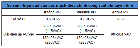 Lưu ý: hiệu suất làm việc của thiết bị sử dụng điện không phụ thuộc vào việc thiết bị đó có hay không có PFC.